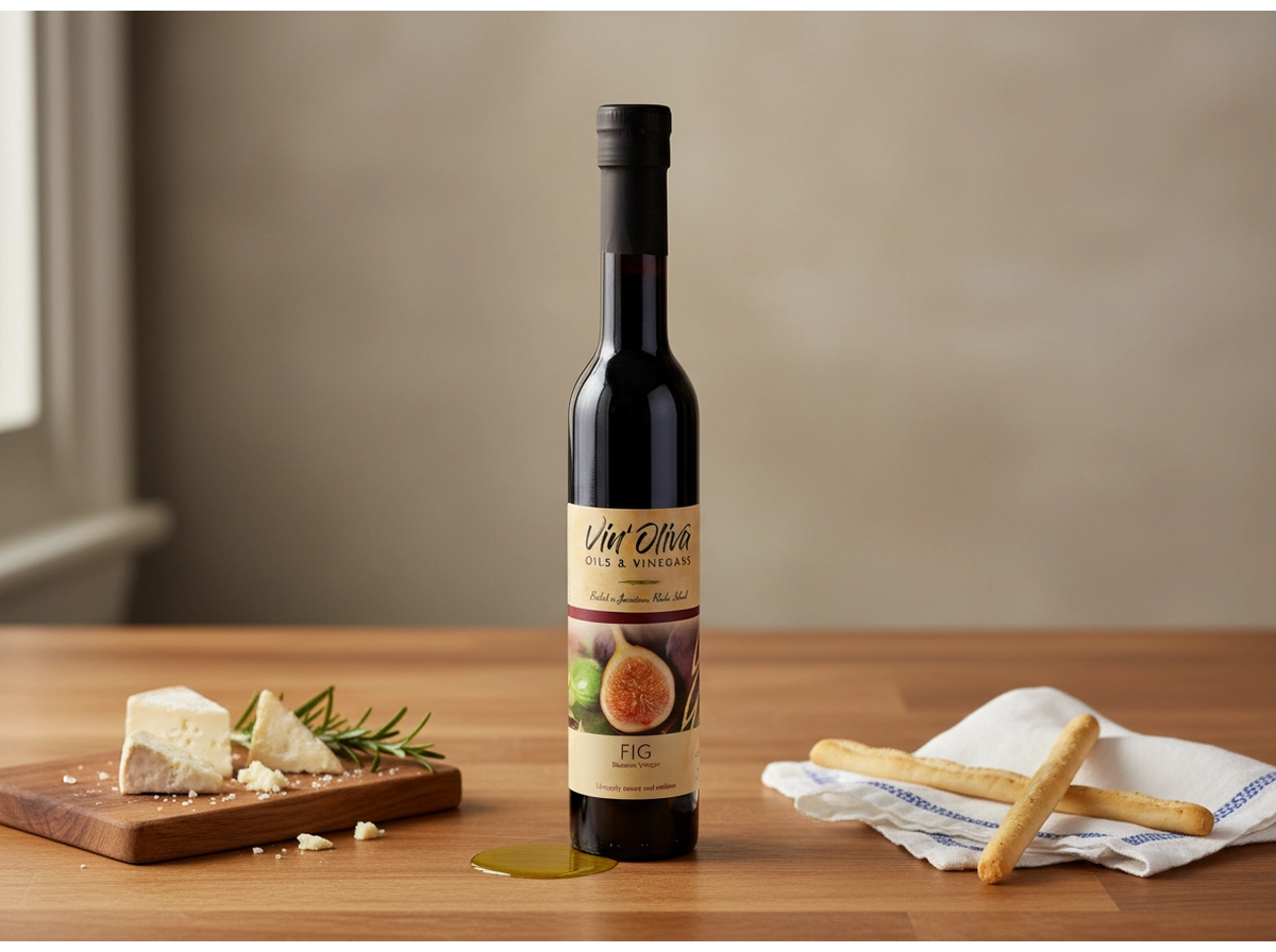 This beautiful, fruit fused vinegar has everything you would expect from ripe Italian figs blended with our Traditional 18 Year Style dark balsamic base: sweet, sour and jammy notes of red fruit, ripe Italian fig and a hint of plum. This vinegar blends delicate acidity with Italian fig purée achieving the perfect nose and texture meant to complement any salad, cheese plate, relish, or marinade. This classic Mediterranean ingredient shines and exudes unmistakable sweet and fruity flavors. Pair this balsamic with Blood Orange olive oil for a flavorful salad dressing or Garlic olive oil for a sweet and savory pork or steak marinade.