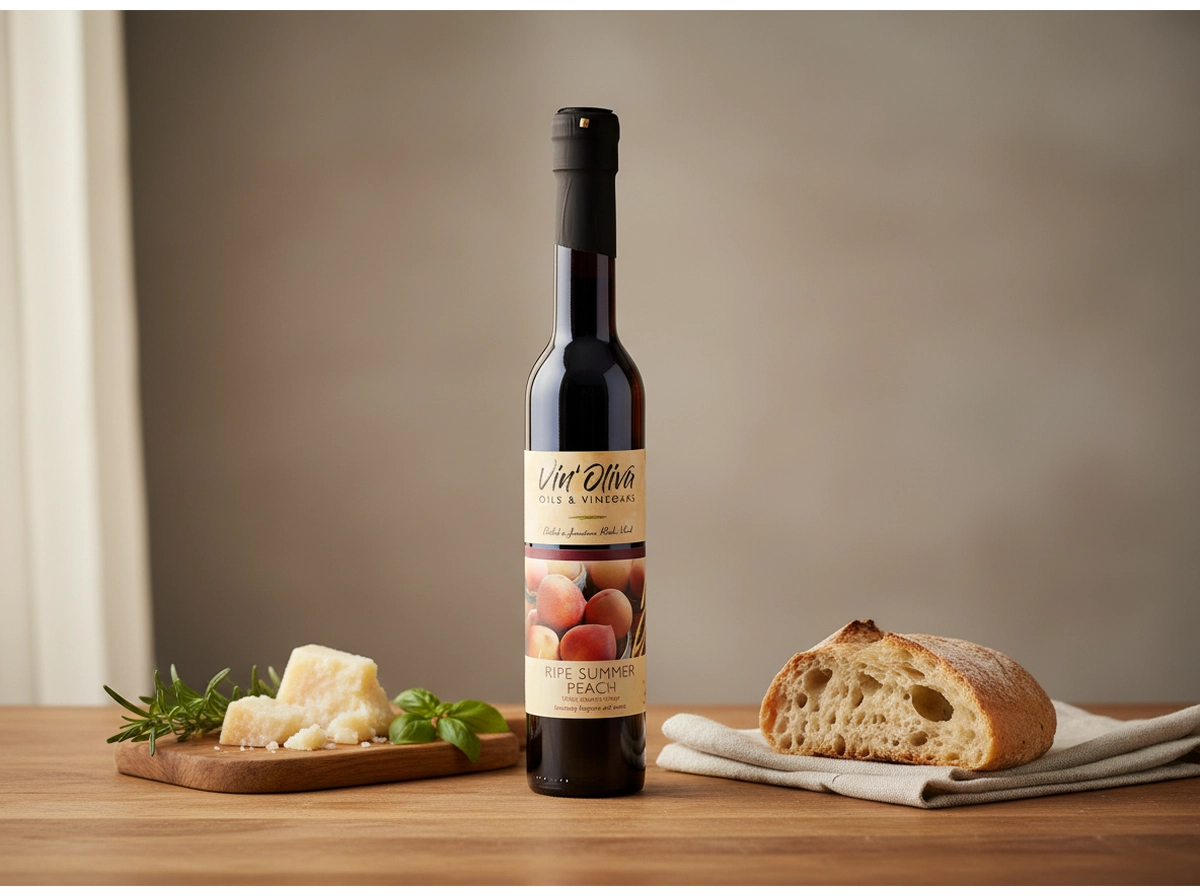 We like Peach white balsamic in salad dressings, marinades, chutneys, and in sweet glazes on smoky barbecue. Our true-to-fruit Peach balsamic epitomizes the flavors of freshly picked, ripe peaches immersed in the highest quality white balsamic. A flavor explosion of fruity and sweet sensations coupled with floral overtones and just a touch of acidity, it can be used in numerous applications. Its bold, ripe peach taste and balanced sweetness most definitely completes our lineup of delicious stone fruit vinegars. Complex, tangy and fruity this is a staff and customer all-time favorite.